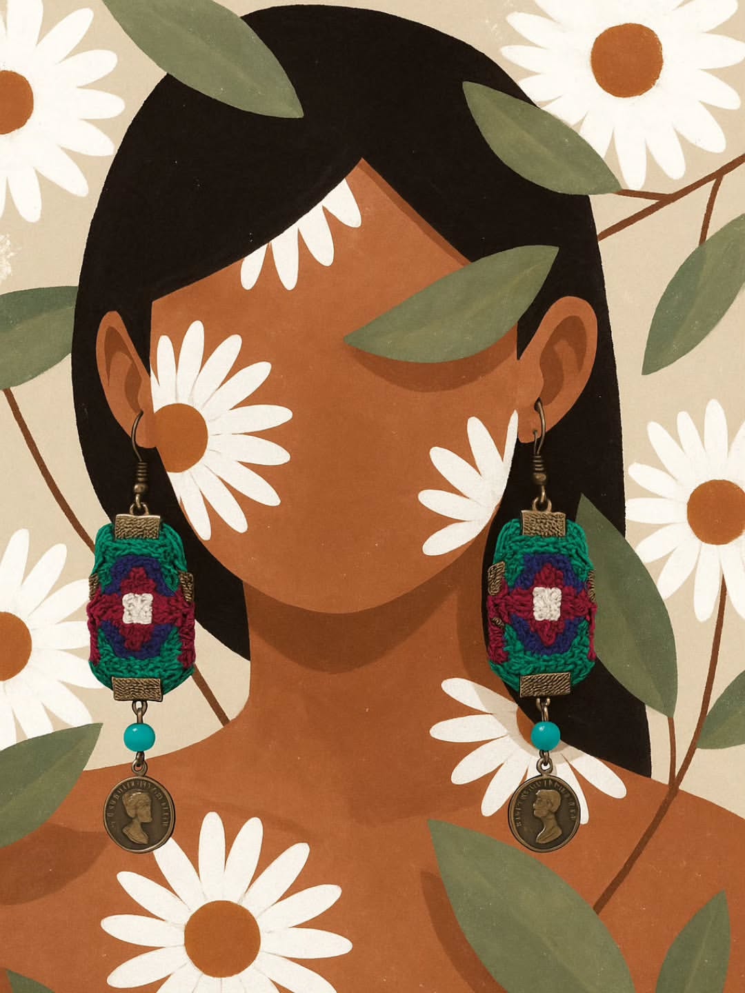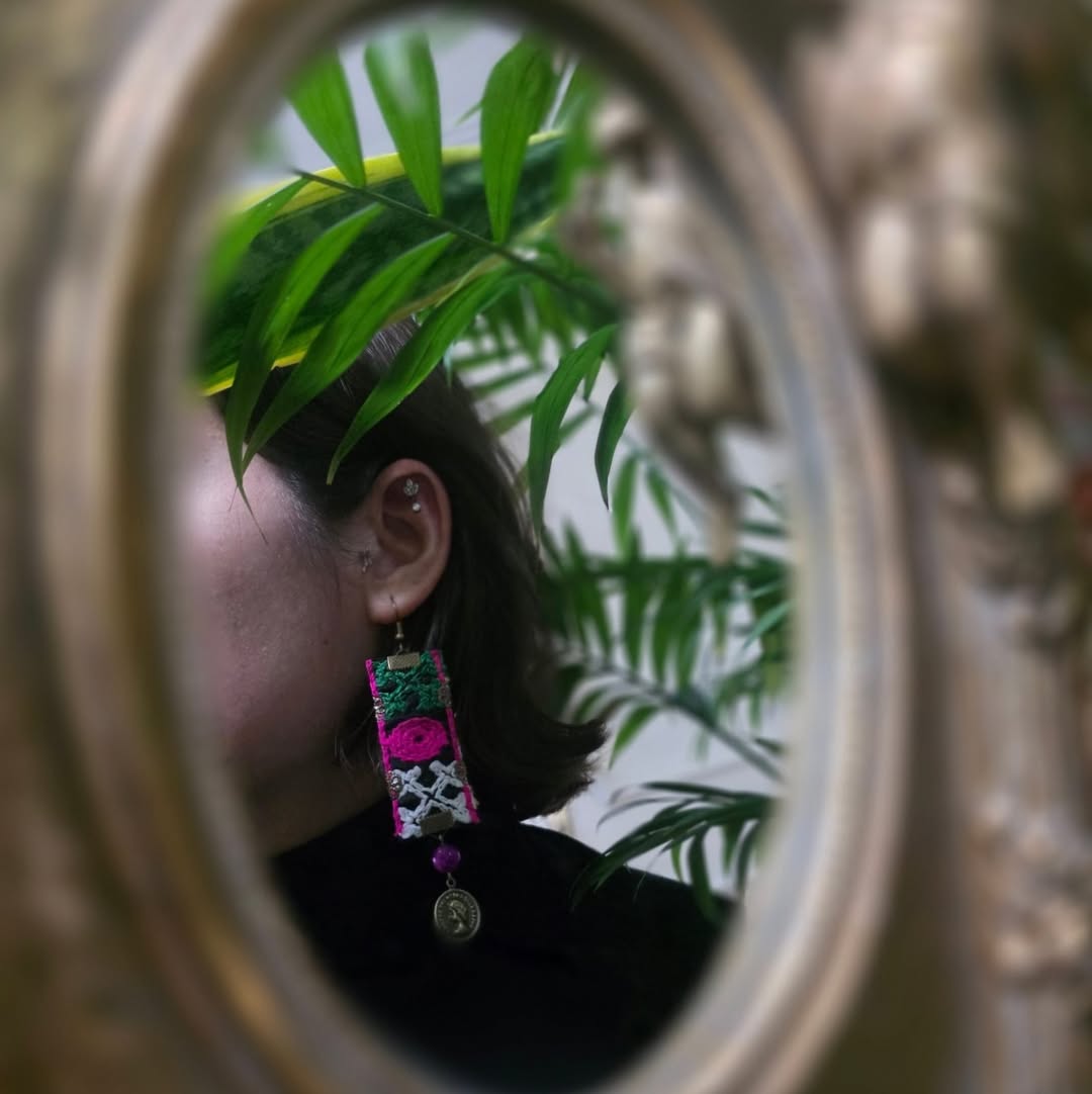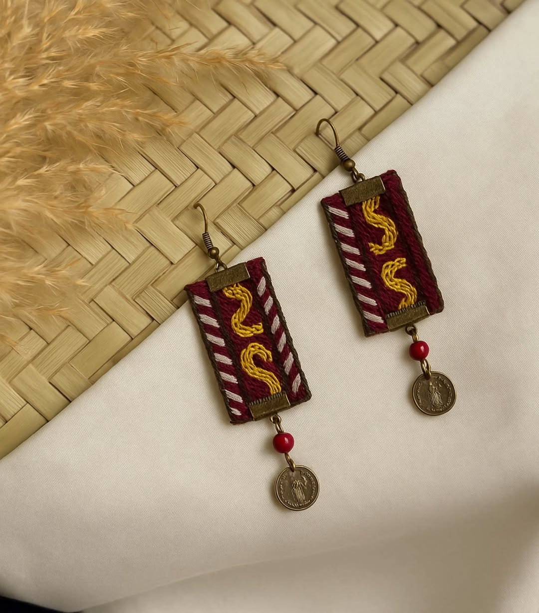 گوشوارهی دستدوز قرمز و طلایی